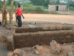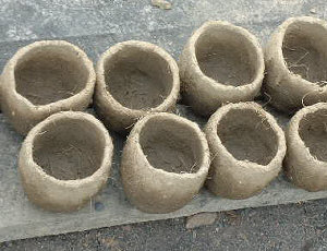 A trench kiln is prepared and the crucibles are put in the kiln and fired. As they get hot the wax melts and the molten brass flows in and takes its place
